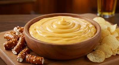 Rich and creamy cheese dip infused with craft beer, perfect for our savory pretzels.